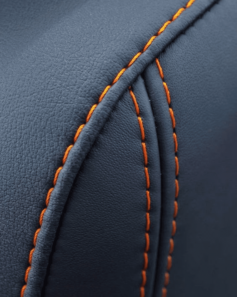 Contrasterende of doorgevoerde stiksels in rood, wit, geel, oranje of blauw — elke kleur leverbaar.