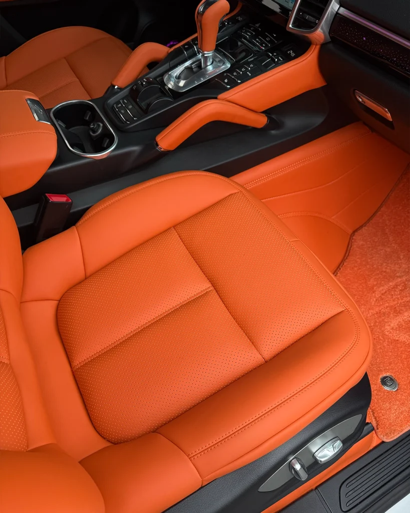 Uw originele stoelen worden volledig herontworpen terwijl alle functies intact blijven. Diamantgestikt leder, gepersonaliseerde hoofdsteunlogo’s, contrasterende stiksels, gecoördineerde gordels — alles naar uw handtekening.