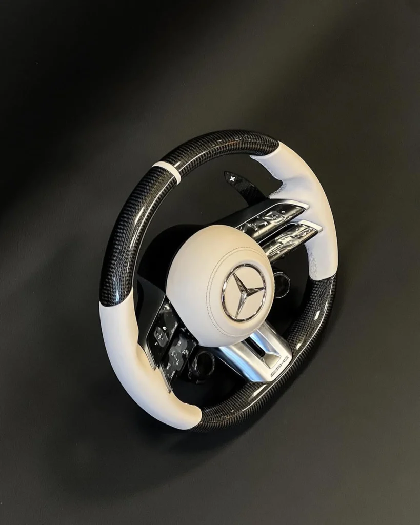 Of u nu de originele look wilt bewaren met betere materialen, kiest voor een sportieve D-shape upgrade, of een volledig gepersonaliseerd stuur wenst met alcantara, carbon en LED-verlichting — wij realiseren het.